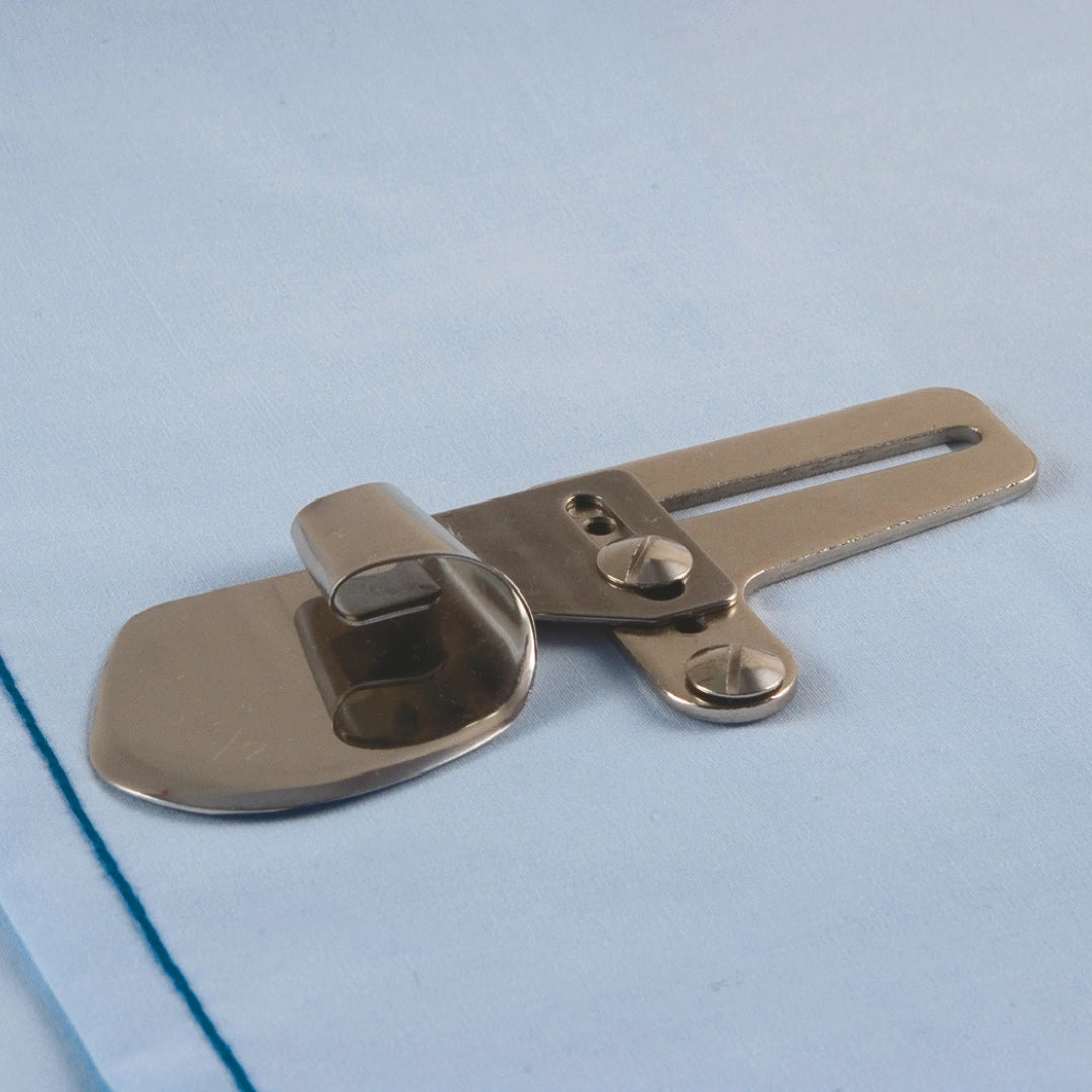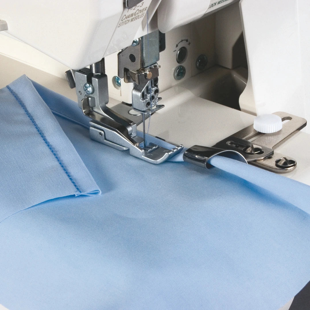 Cet accessoire permet de réaliser des ourlets parfaitement rentrés avec une finition propre et régulière. Idéal pour les manches droites, il s’utilise tissu envers vers le haut : la couture de recouvrement apparaît alors sur l’endroit comme élément décoratif.