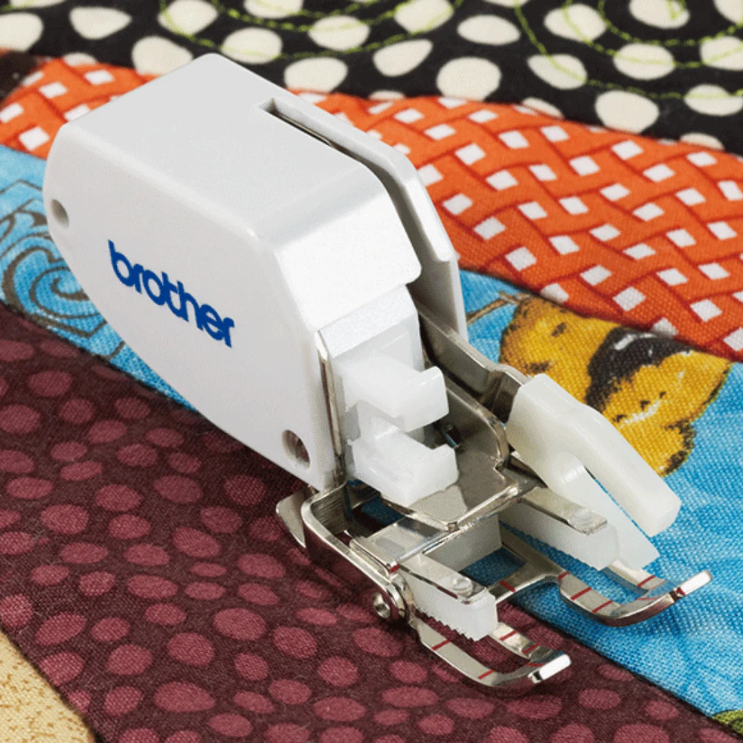 Glisse parfaite et points précis ! Le pied double entraînement ouvert (7 mm) assure un entraînement fluide, des points décoratifs nets et un positionnement précis de l’aiguille.