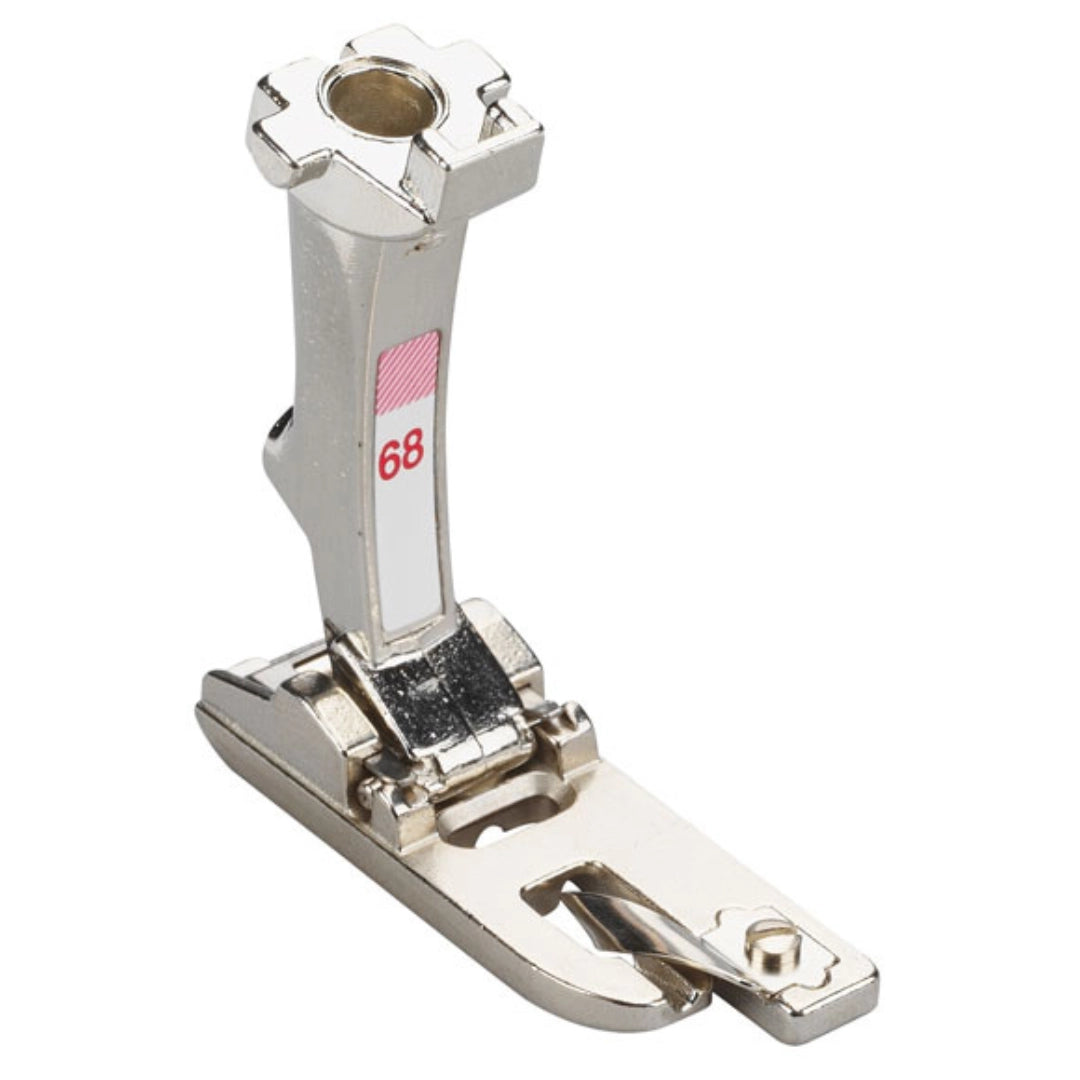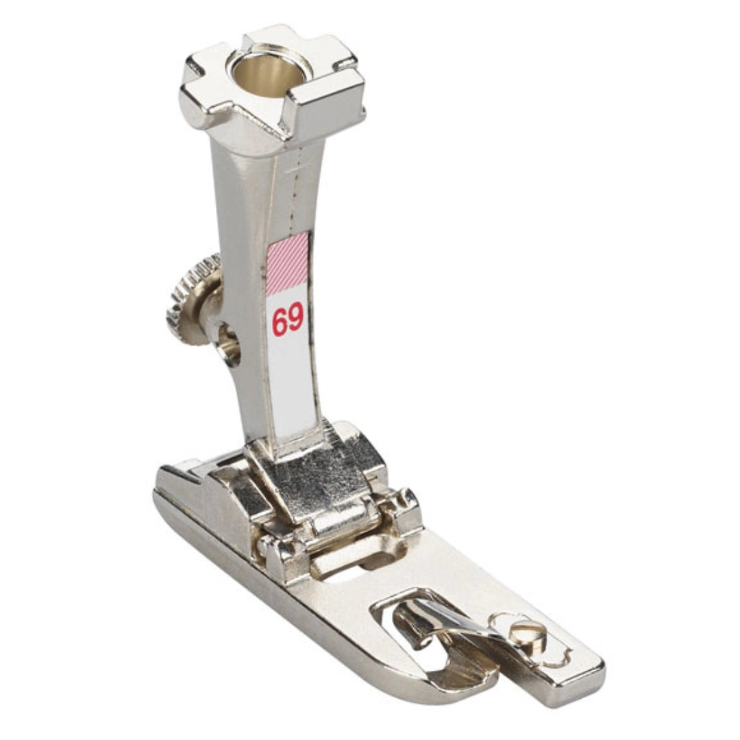 Ce pied-de-biche est idéal pour ourler des tissus souples comme les tricots et autres matières similaires. Le tissu est replié deux fois pendant la couture et cousu à l‘aide d‘un point de surjet. On obtient un ourlet étroit et légèrement tridimensionnel qui ne s‘effiloche pas. Les pieds #68 et #69 sont utilisés pour des ourlets d‘une largeur de 2 ou 4 mm.