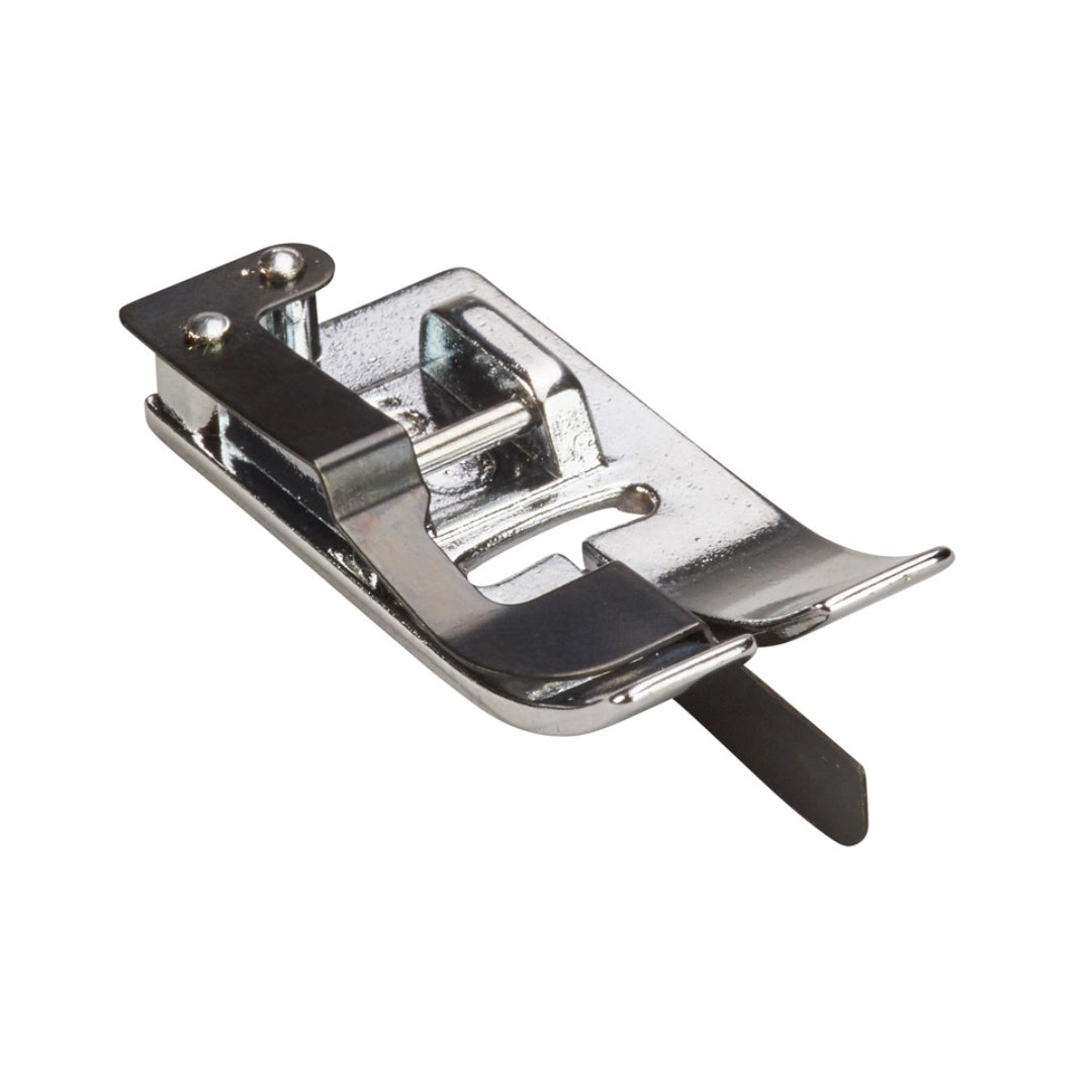Ce pied-de-biche équipé d’un guide simplifie la couture des bordures, des ourlets et des plis. Il est également idéal pour appliquer des cordons ou des rubans et renforcer les angles. Son guide permet de réaliser des coutures et des ourlets parfaitement parallèles au bord du tissu.