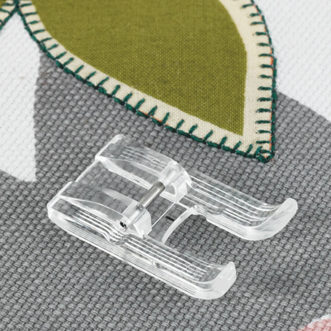 Appliqués précis en toute visibilité ! Ce pied transparent assure un contrôle total pour des finitions nettes et soignées.