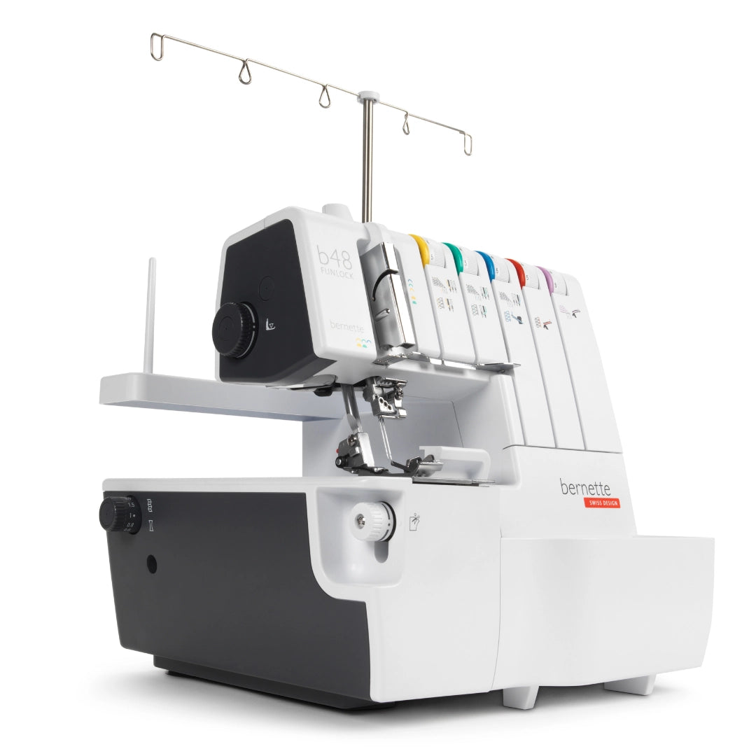 La Bernette 48 est une machine combinée surjeteuse et recouvreuse, offrant une grande polyvalence pour réaliser des finitions professionnelles sur une large gamme de tissus. Elle propose 23 points différents, permettant de coudre des coutures à 2, 3, 4 ou 5 fils, ainsi que des ourlets roulottés et des points de recouvrement.