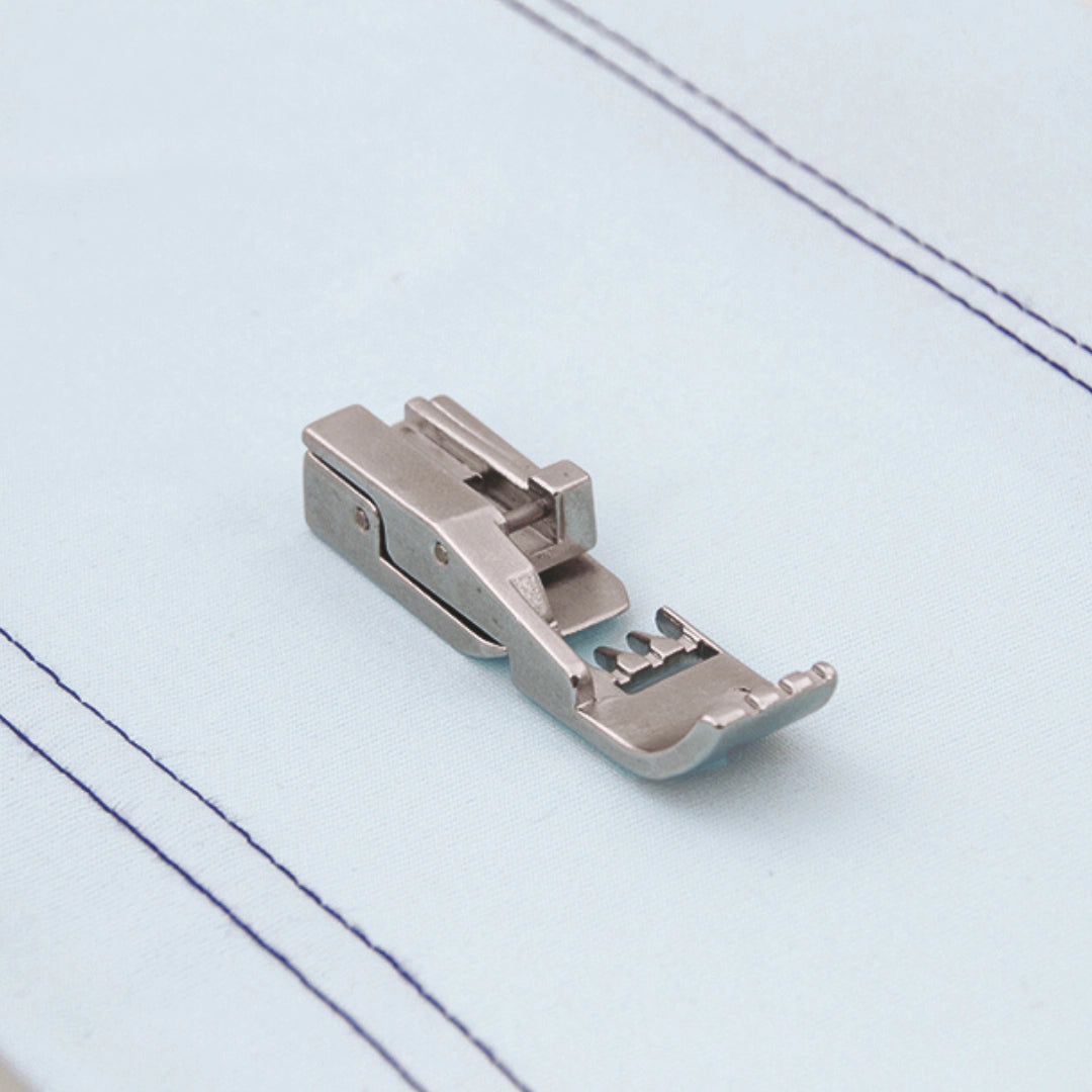 Ce pied extra-étroit offre une excellente visibilité sur la couture et assure un entraînement fluide et précis du tissu, idéal pour les finitions soignées.
