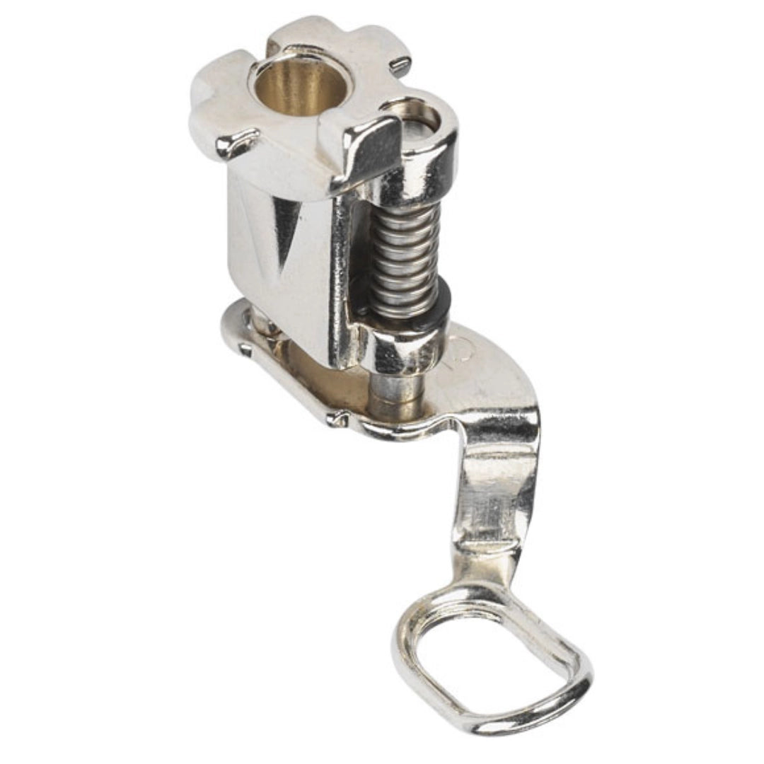 Ce pied est idéal pour la couture d‘appliqués et la couture à mains libres. La forme légèrement recourbée vers le haut facilite en outre la couture de tissus volumineux, la broderie sur des appliqués et de motifs de broderie denses.