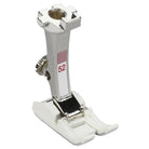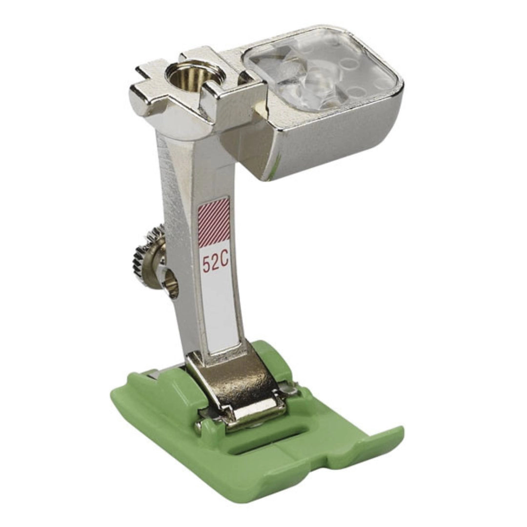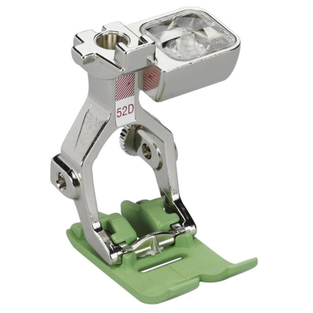 La semelle de ce pied est équipée d‘un enduit antiglisse qui facilite l‘avancement fluide du pied sur les tissus difficiles comme le plastique, le vinyle, le cuir et autres matériaux similaires