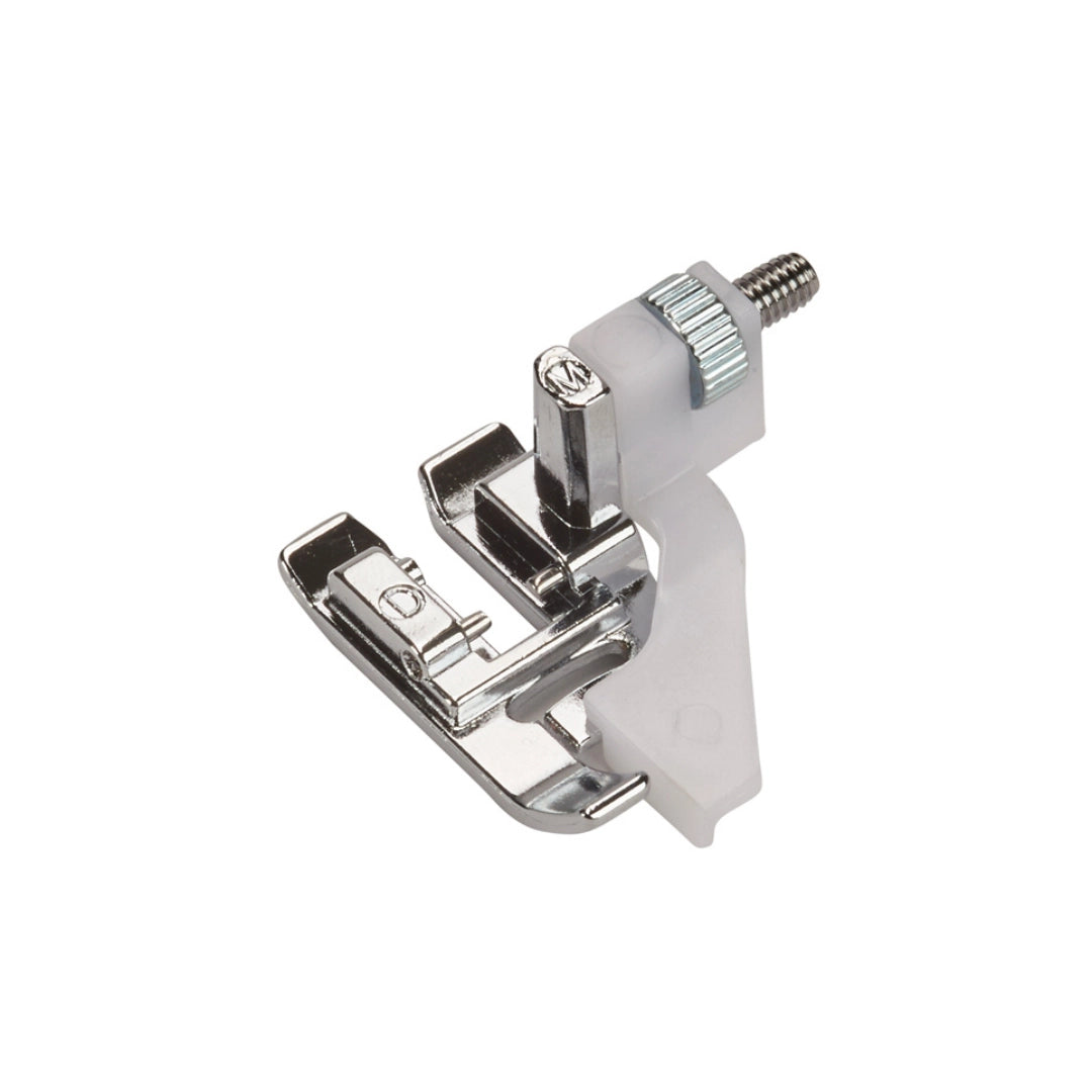 Ce pied est spécialement conçu pour la réalisation d'ourlets invisibles et la surpiqûre des bords. Les points piquent uniquement l'ourlet, rendant les perforations presque imperceptibles sur l'endroit du tissu. Doté d'une petite rainure à l'arrière, le pied pour point invisible active l'entraînement biface intégré, garantissant un déplacement uniforme, même pour les matériaux « collants ».